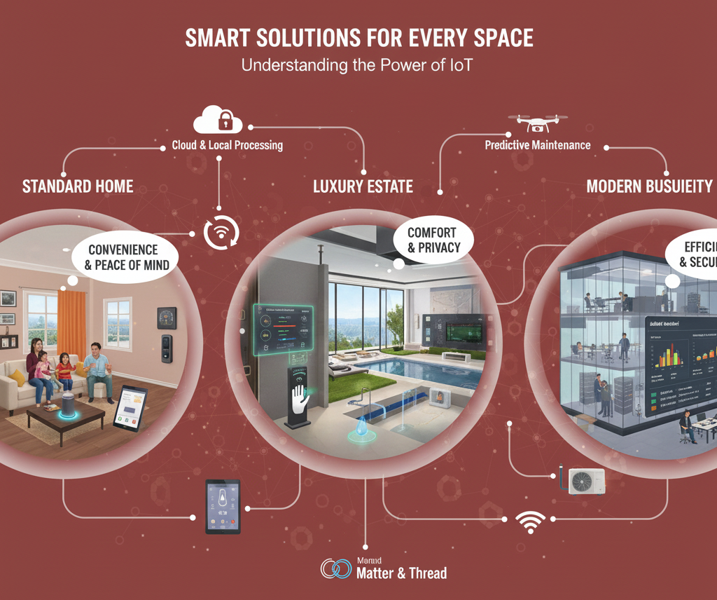 Whether it’s a cozy family home, a high-end luxury estate, or a bustling corporate office, IoT technology works behind the scenes to make environments more responsive, secure, and efficient.